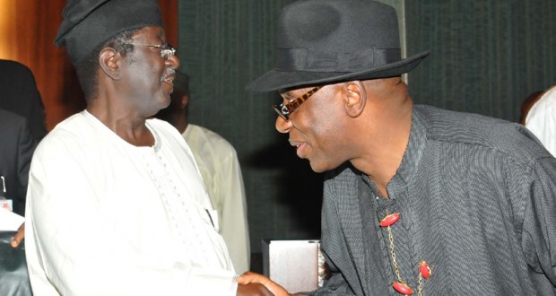Govs Rotimi Amaechi & Jonah Jang Greet at the National Economic Council meeting in Abuja Yesterday [Jun 27] |