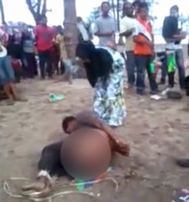 The man, who was caned across his bare buttocks by a tree branch, was so badly hurt that he had to receive hospital treatment.